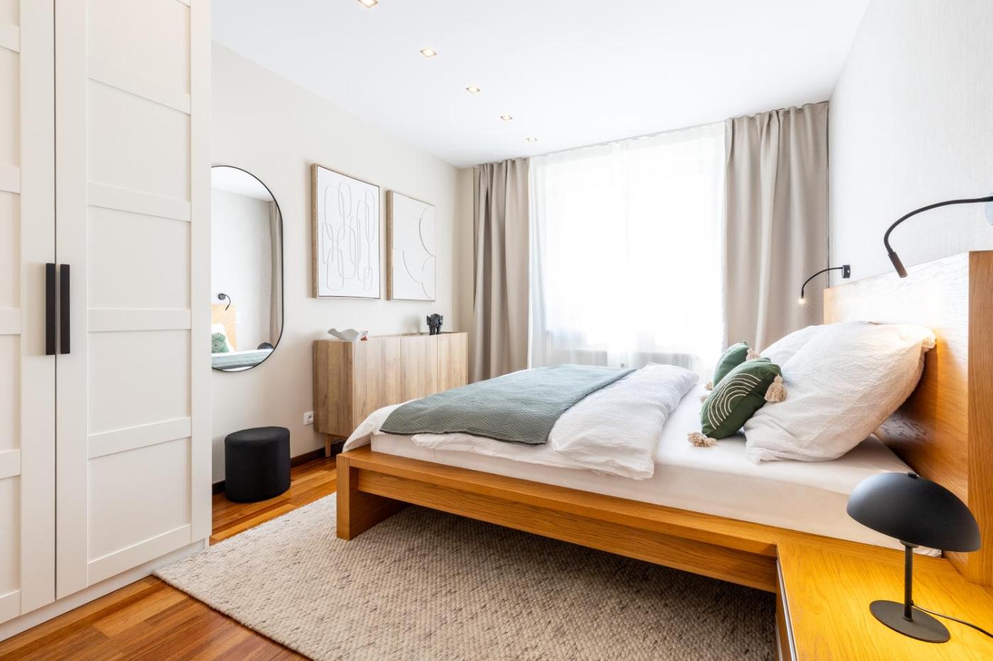 Two-Bedroom Apartment. This spacious apartment is comprised of 1 living room, 2 separate bedrooms and 1 bathroom with a walk-in shower and a bath. In the well-fitted kitchen, guests will find a refrigerator, a dishwasher, kitchenware and an oven. The apartment offers air conditioning, a washing machine, a tea and coffee maker, a dining area, as well as a flat-screen TV. The unit offers 3 beds.