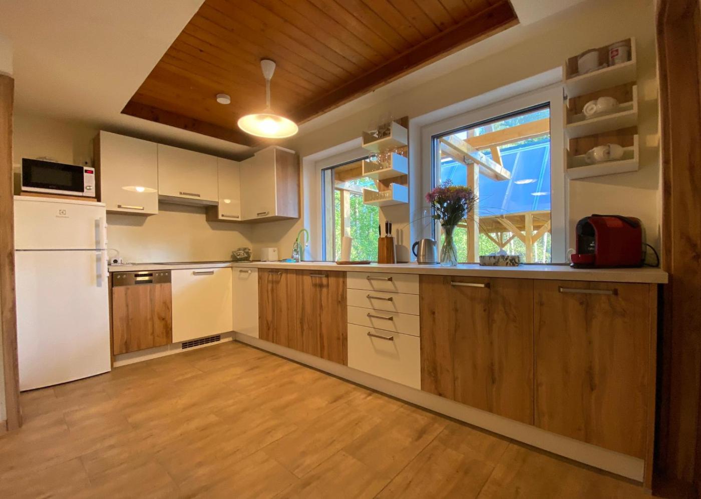 Four-Bedroom Chalet. The sauna and fireplace are the special features of this chalet. Featuring a private entrance, this spacious chalet also consists of 1 living room, 4 separate bedrooms and 2 bathrooms with a shower. Guests will find a stovetop, a refrigerator, a dishwasher and kitchenware in the well-fitted kitchen. The chalet also offers a barbecue. Boasting a terrace with garden views, this chalet also provides a washing machine and a flat-screen TV with satellite channels. The unit offers 6 beds.