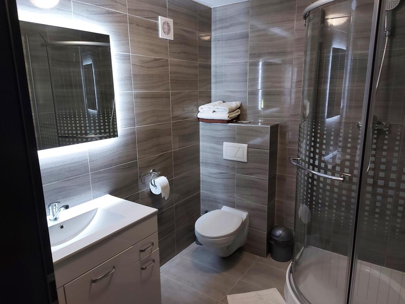 Deluxe Double Room with Extra Bed. The spacious double room provides a wardrobe, a sofa, as well as a private bathroom featuring a shower and a hairdryer. This double room features a carpeted floor, heating and a flat-screen TV with satellite channels. The unit offers 2 beds. ;